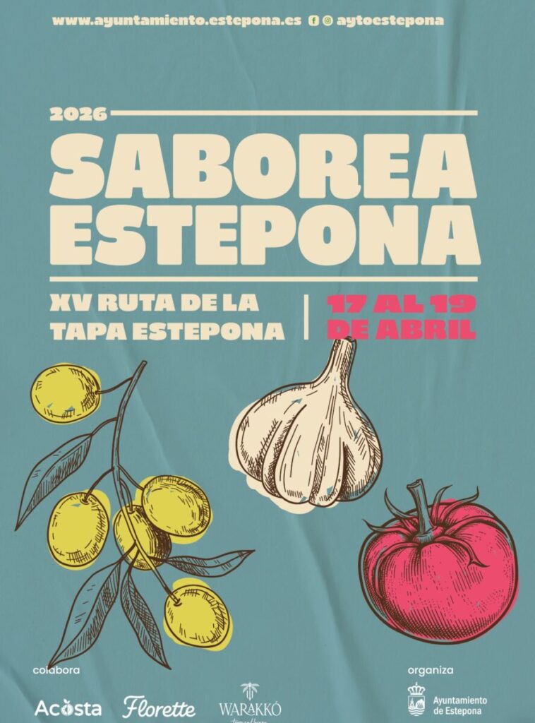 El plazo de inscripción para la XV edición de la Ruta de la Tapa Saborea Estepona permanece abierto hasta el 27 de marzo de 2026. El evento se celebrará del 17 al 19 de abril, y forma parte del programa Estepona Vive Sus Calles 2026. Podrán participar todos los bares y restaurantes ubicados en el término municipal.