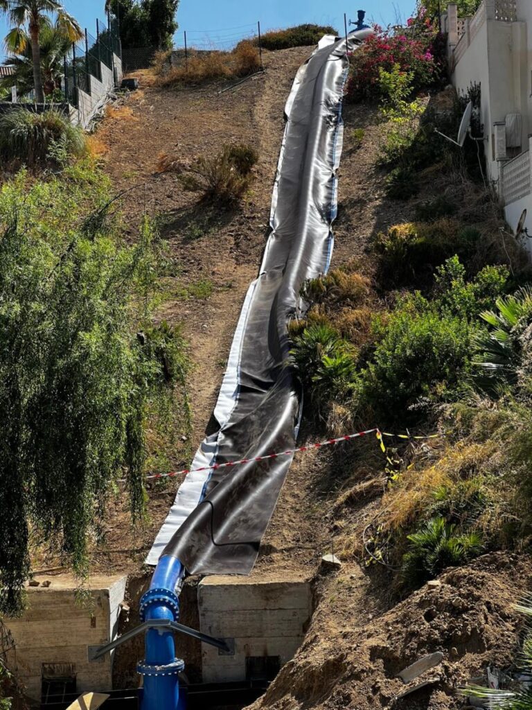 Los trabajos se han desarrollado del lunes 7 al viernes 11 de julio sin afectar al suministro de los vecinos de Benalmádena, gracias a la máxima coordinación entre Acosol y el Ayuntamiento de Benalmádena. La obra ha consistido en la instalación de un bypass de 80 metros con tubería flexible de 500 milímetros de diámetro.
