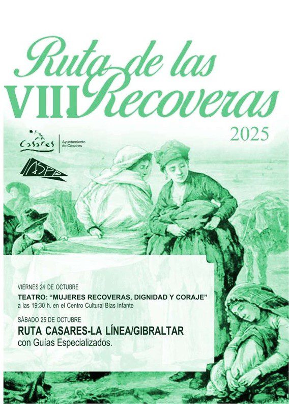 Casares organiza la octava edición de la Ruta de las Recoveras los días 24 y 25 de octubre con una representación teatral y un recorrido por el trayecto histórico entre Casares y La Línea/Gibraltar. El Ayuntamiento de Casares y la Asociación de Mujeres ASPA impulsan el evento que conmemora el legado de las mujeres que durante la posguerra recorrían a pie la distancia entre Casares y la frontera de Gibraltar cargadas con productos del campo para venderlos o intercambiarlos. La programación incluye la obra «Mujeres Recoveras, Dignidad y Coraje» el viernes 24 a las 19:30 horas en el Centro Cultural Blas Infante y la tradicional ruta el sábado 25 acompañada por guías especializados.