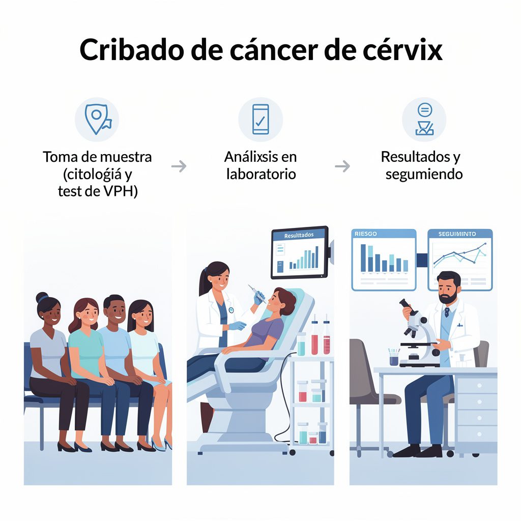 Las pruebas de cribado se realizan conforme a las recomendaciones del Sistema Nacional de Salud. Entre los 25 y 34 años, la prueba consiste en una citología cada tres años si los resultados previos son normales. A partir de los 35 años, el estudio principal es el del Virus del Papiloma Humano y, en caso de resultado positivo, se procede a la citología.