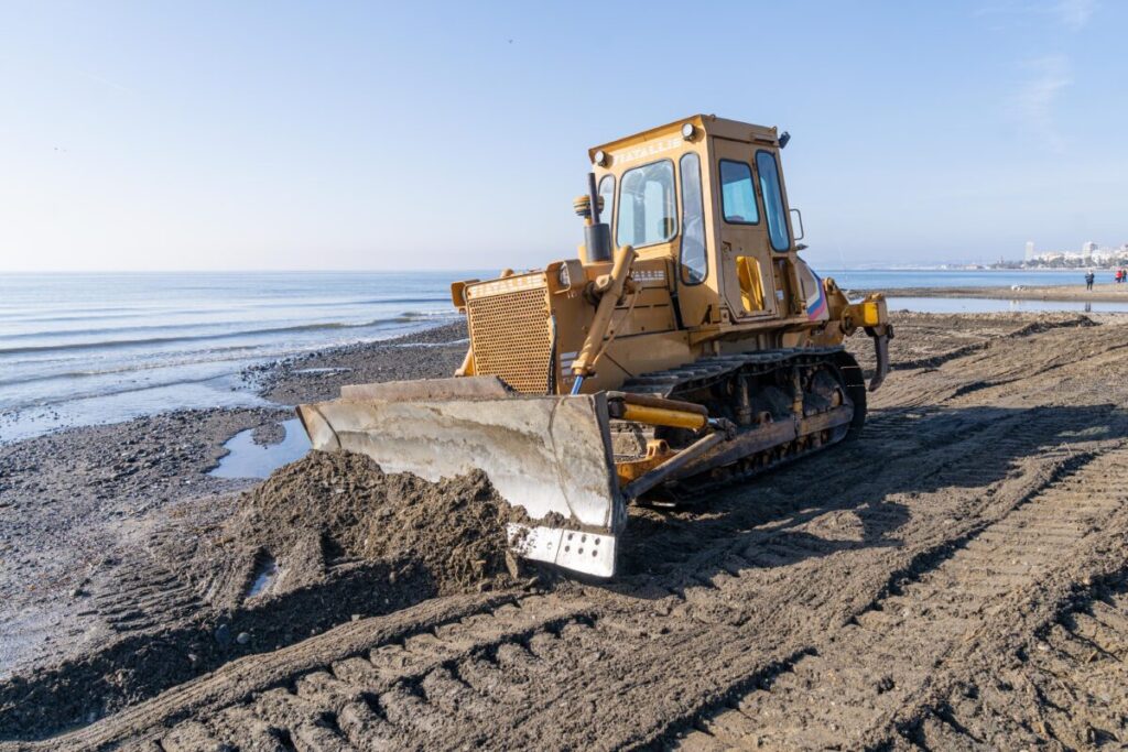 Los temporales e intensas lluvias de las últimas semanas han alterado el perfil del litoral de Estepona, desplazado los cauces de ríos y arroyos y generado acumulaciones de agua en la arena. Para hacer frente a los daños, la concesionaria del servicio de playas, Licuas, ha contratado maquinaria específica —un bulldozer— orientada a restaurar el estado de las playas. Los trabajos, impulsados por el Ayuntamiento de Estepona, se desarrollan de forma simultánea en las playas del casco urbano y en las del extrarradio.