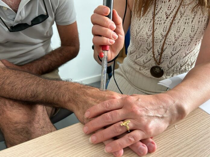 Otra de las intervenciones, muy novedosas en este caso, es la formación para profesionales que Soludable ha llevado a cabo los días 16 y 30 de junio en la Salina La Esperanza en Puerto Real (Cádiz). La piel de los salineros está expuesta a una cantidad de radiación ultravioleta muy importante puesto que trabajan sin espacio de sombra acrecentada, además, por la radiación reflejada por el agua y la sal. Esta acción se ha llevado a cabo con 20 trabajadores y, además, de la acción formativa se está desarrollando un estudio de investigación que conlleva cuestionarios de hábitos de fotoprotección, chequeos cutáneos y, por primera vez, revisiones oftalmológicas gracias a la colaboración de los oftalmólogos del equipo Soludable. Para concluir con este trabajo de investigación, durante el mes de julio se realizarán dosimetrías personales con estos trabajadores y radiometrías ambientales.