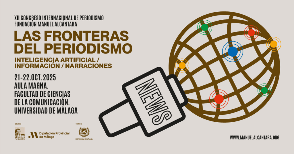 La Fundación Manuel Alcántara celebra el XII Congreso Internacional de Periodismo los días 21 y 22 de octubre en el Aula Magna de la Facultad de Ciencias de la Información de la Universidad de Málaga bajo el título Las fronteras del periodismo: IA, redes, información, análisis, narraciones. El encuentro, patrocinado por la Diputación de Málaga y organizado con la colaboración del Departamento de Periodismo de la UMA, reunirá a destacados profesionales del periodismo nacional para analizar el impacto de la inteligencia artificial en la gestión informativa y los cambios en la comunicación. La inauguración tendrá lugar a las 10:00 horas del martes 21 de octubre con entrada libre hasta completar el aforo.