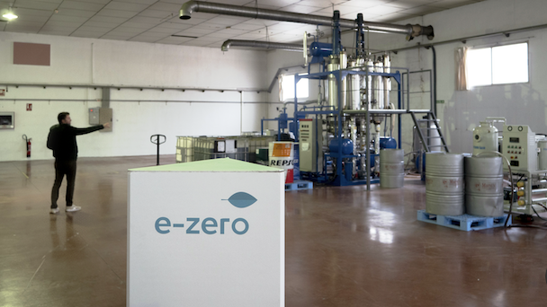 El proceso desarrollado por e-zero se caracteriza por su bajo consumo energético, su alta capacidad productiva y por ser 100% limpio, sin generar residuos. El único subproducto es una pequeña cantidad de agua que se reutiliza en el sistema de refrigeración. En los casos más extremos, cuando se genera un residuo sólido similar al betún derivado de aceites en muy mal estado, este se reaprovecha para usos como la fabricación de asfaltos.