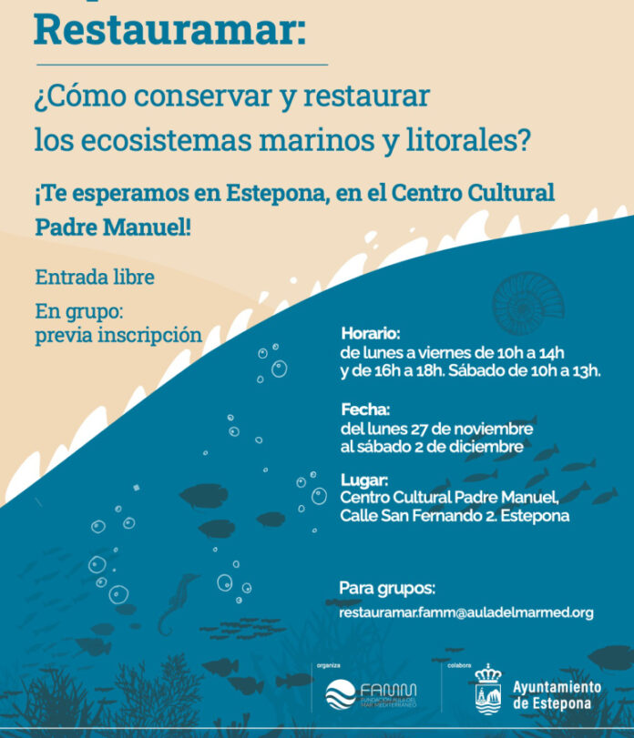 La exposición ‘Restauramar’ contiene amplios paneles descriptivos de fondos marinos, maquetas, material informativo y otros elementos que enriquecerán el conocimiento del público sobre el medio marino, y estará abierta al público de 10:00 a 14:00 y de 16:00 a 18:00 horas. La iniciativa constará de un programa de actividades participativas diarias, guiadas por educadores ambientales, y estará dividida en tres áreas temáticas: ‘Biodiversidad en el litoral y medio marino de la provincia de Málaga’, ‘Retos a los que se enfrentan los mares y océanos’, y ‘Buenas prácticas que cuidan el mar’.