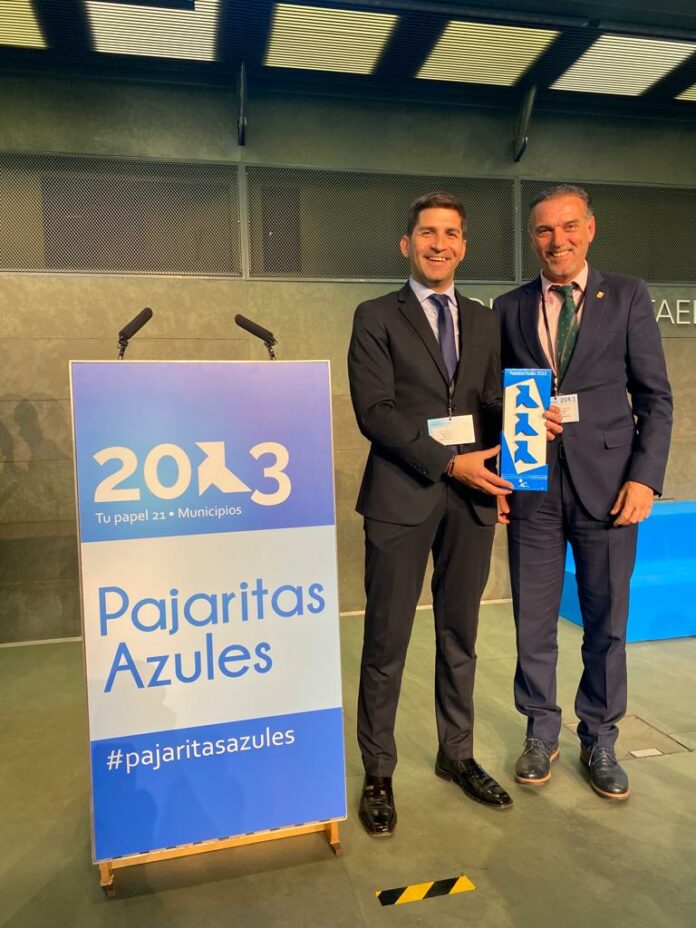 José Antonio Mena, presidente de la Mancomunidad de Municipios la Costa del Sol Occidental, y Juan Luis Villalón, delegado de RSU, han recogido hoy el máximo galardón en la recogida de papel y cartón, tres pajaritas azules. La entrega de ha tenido lugar en Valladolid, en un acto presidido por Ignacio de Domingo, subsecretario del Ministerio de Política Territorial; Margarita Ruiz, subdirectora general de Economía Circular del Ministerio para la Transición Ecológica y el Reto Demográfico, y Eduardo Querol, presidente de ASPAPEL.