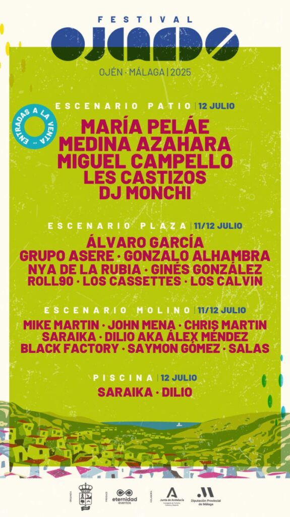 Ojén acogerá los días 11 y 12 de julio la vigésima edición del festival Ojeando, que presenta un cartel completo con la participación de grupos consolidados y emergentes distribuidos en cuatro escenarios por las calles de la localidad malagueña.