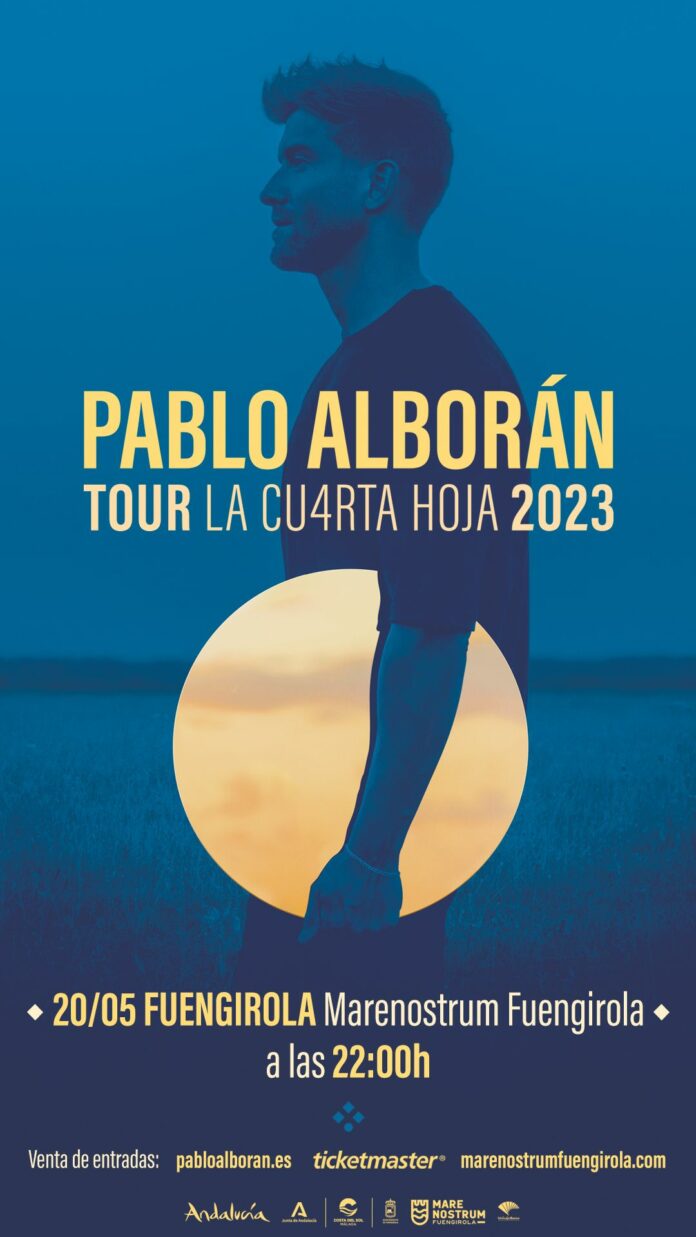 El cantante romántico por excelencia, Pablo Alborán, presentará el sábado 20 de mayo en el escenario Unicaja Banco de Marenostrum Fuengirola su nuevo álbum “La Cu4rta Hoja” donde comenzará su gira. Acompañado de voz, guitarra y piano, regalará a los asistentes una noche mágica en el recinto fuengiroleño situado a los pies del Mar Mediterránea.
